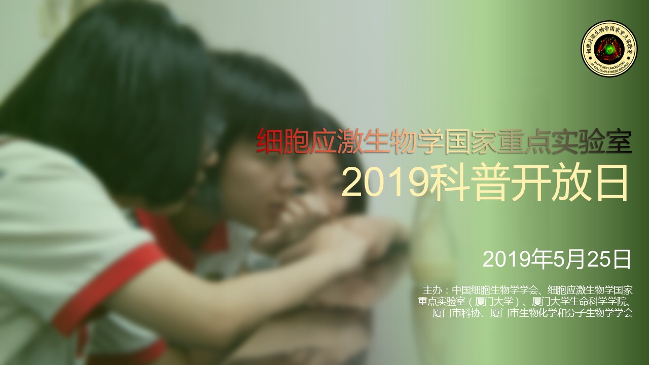 2019年5月25日,为了响应科技部、中宣部和中国科协“加大科普活动力度、提高公民科学素养”的号召,细胞应激生物学国家重点实验室举办了“2019科普开放日”活动。此次活动由中国细胞生物学学会、细胞应激生物学国家重点实验室、厦门大学生命科学学院、厦门市科协、厦门市生物化学和分子生物学学会主办。活动面向中学生群体,以实验小鼠为主题,充分发挥国家级平台的优势,采取讲座和参观相结合的方式举办。来自厦门市科技中学翔安校区高一年级和双十中学思明分校初二年级的100名师生及家长参与了本次活动。