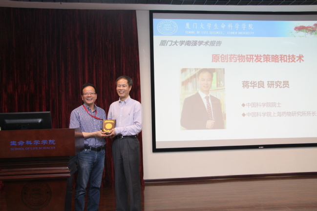 4月13日上午,中国科学院上海药物研究所蒋华良院士应邀为我室师生带来了一场题为“原创药物研发策略和技术”的南强学术讲座。林圣彩教授主持了本场讲座,并为蒋华良院士颁发了南强学术讲座纪念章。