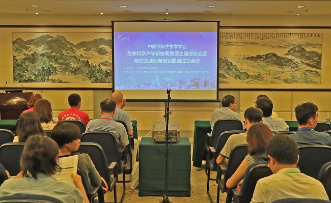 为了助力厦门市生物医药产业的发展,服务地方经济,由厦门市科协,厦门市海沧区人民政府和厦门大学生命科学学院牵头组织举办生命科学产学研协同发展主题讨论会暨院校企业创新创业联盟成立会议,会议于2017 年9 月26 日14:00-17:00 在厦门国际会展中心3 楼301 室举办,厦门市科学技术协会副主席郑颖聪先生和马宗远副部长参加会议。会议旨在探讨生命科学领域的创新转化和产业化合作,将聚焦目前国内的学术成果转化机制,尝试提出优化相关政策的建议,展望今后中国生物医药的相关行业发展。籍此论坛召开之际,宣布成立中国细胞生物学学会院校企业创新创业联盟成立会议。本次讨论会参会人数150余人,包括南京大学医学院李朝军教授、中国科学院上海生物化学与细胞生物学研究所陈正军教授、南京大学模式动物所高翔教授、厦门大学张晓坤教授,李博安教授、张云武教授、邓贤明教授、付国教授,厦门大学附属成功医院季天海教授、CST 亚太、海鲲投资、北京百奥赛图基因生物技术有限公司、北京赛智创业科技有限公司、和泓(厦门)生物技术有限公司、厦门市同仁心医药有限公司、厦门信德科创生物科技有限公司、厦门生命互联科技有限公司、厦门鹭港兆康生物科技有限公司、福建泽源生物科技有限公司、厦门成坤生物技术有限公司、厦门金诺威生物科技有限公司、厦门拜尔杰生物科技有限公司、厦门南馨荣科技有限公司、厦门万泰凯瑞生物技术有限公司、厦门中药厂有限公司、厦门市第三医院、厦门特宝生物工程股份有限公司。