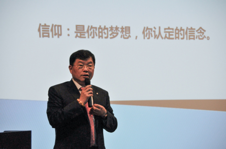 随后,裴元虎博士又谈及了“改变自己”。他向同学们提出了“天下兴亡,我的责任”,并希望同学们能够以此为目标,从思想开始改变自己。信仰是精神力量,信仰的源头就是思想。只有改变思维,学着从正能量的方向思考问题,