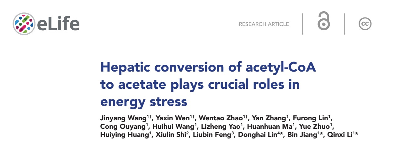 该研究于2023年10月30日以“Hepatic conversion of acetyl-CoA to acetate plays crucial roles in energy stress”为题发表在eLife上。