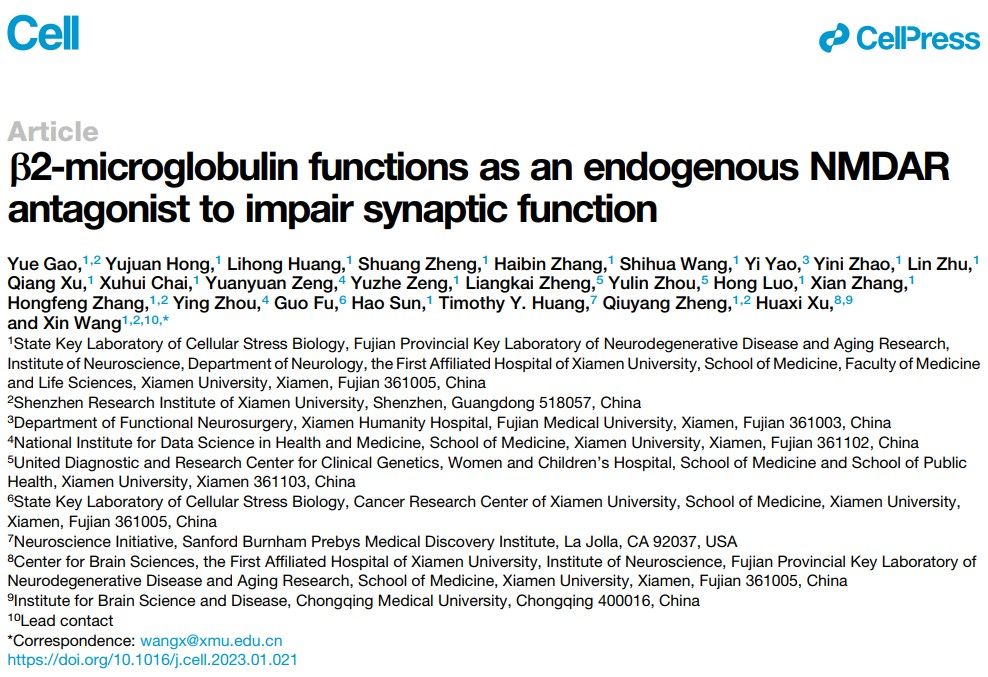 β2-微球蛋白是免疫学领域的明星分子,它负责把入侵身体的病原体信息传递给免疫细胞,从而指挥免疫系统抵御外来细菌和病毒,保护我们的健康。然而,在唐氏患者体内,游离的β2-微球蛋白水平显著升高,却会对神经系统产生不良影响,显示了该蛋白在免疫和神经系统中的两面性。在本论文中,王鑫教授团队发现了β2-微球蛋白在神经系统中的功能与其在免疫系统中的经典作用完全不同,即β2-微球蛋白通过抑制对于学习记忆至关重要的谷氨酸受体,从而造成认知损伤。
