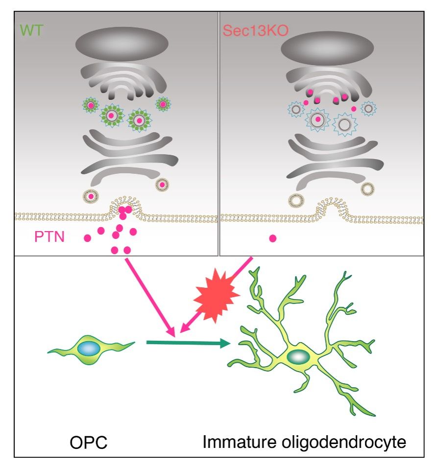 图2. COPII介导的自分泌因子PTN可以促进OPC分化形成髓鞘