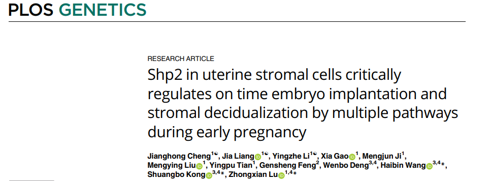 这些结果揭示了与Shp2蛋白相关的子宫基质细胞蜕膜化新的调控方式,于1月28日在线发表于PLoS Genetics期刊。药学院2013级博士研究生程江红、2017级硕士生梁佳和2015级硕士生李莹哲为共同第一作者。医学院王海滨教授、孔双博副教授和药学院吕忠显教授为本文通讯作者。