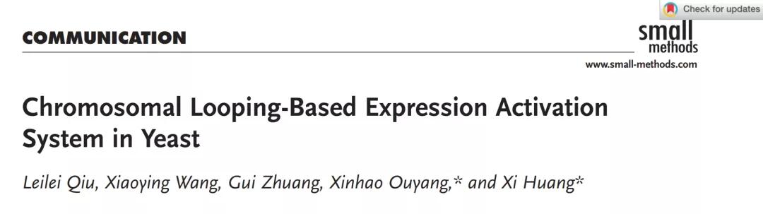 近期,我室黄烯教授、欧阳鑫昊副教授团队在Small Methods发表了题为Chromosomal Looping-Based Expression Activation System in Yeast的研究论文,开发了调控染色质相互作用的光遗传学工具。