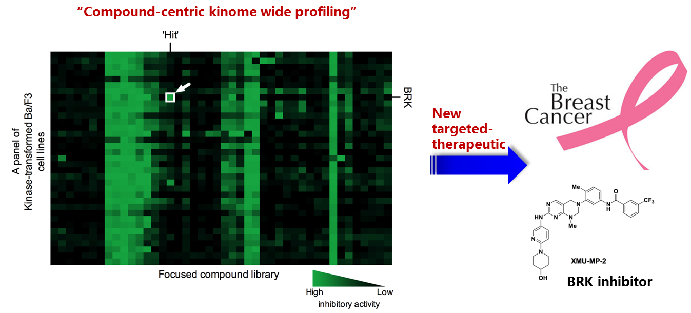 近日,我室邓贤明教授课题组在肿瘤研究领域重要期刊《Cancer Research》上发表题为“Targeting BRK-positive Breast Cancer with Small-Molecule Kinase Inhibitors”的研究论文,首次报道了具有体内药效BRK小分子抑制剂XMU-MP-2能够作为乳腺癌治疗的潜在药物。